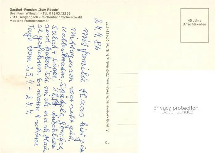 Reichenbach_Gengenbach Gasthaus Pension Zum Roessle Gaststube Landschaftspanorama Schwarzwald Reichenbach Gengenbach postalisch nicht gelaufen 1986 Erhaltung siehe scans [FriedD77] Frierer