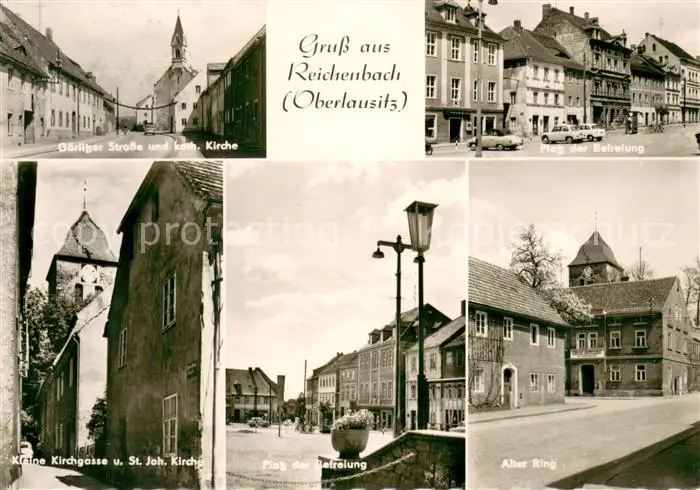 AK / Ansichtskarte Reichenbach_Oberlausitz Goerlitzer Strasse Kirche Platz der Befreiung Kirchgasse Kirche Alter Ring Reichenbach_Oberlausitz
