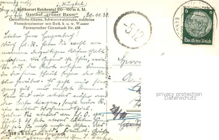 Reichental Gasthof Gruener Baum Kirche Reichental postalisch gelaufen 1939 Erhaltung siehe scans [WerneD78] WernPID7