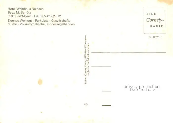 Reil Weinhaus Nalbach Terrasse Kegelbahn Panorama Blick ueber die Mosel Reil postalisch nicht gelaufen nach 1965 Erhaltung siehe scans [FriedD77] Frierer