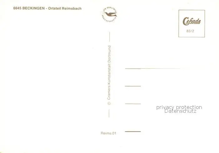 Reimsbach Beckingen Panorama Oppen Wendelinus Kapelle Ehrenfriedhof Schule Talstrasse Kirche Fliegeraufnahme Beckingen postalisch nicht gelaufen 1983 Erhaltung siehe scans [FriedD77] Frierer
