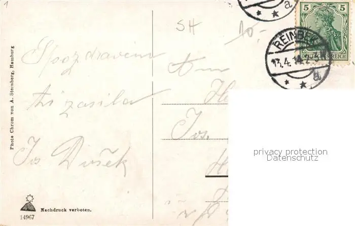 Reinbek Mondschein Panorama Reinbek postalisch gelaufen 1914 Erhaltung siehe scans [KathaD81] Kathoren