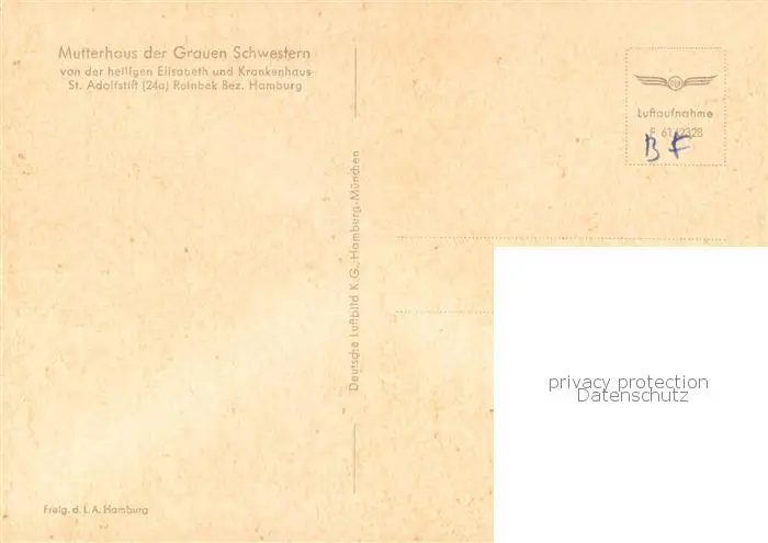 Reinbek Mutterhaus der Grauen Schwestern und Krankenhaus St Adolfstift Fliegeraufnahme Reinbek postalisch nicht gelaufen nach 1965 Erhaltung siehe scans [WerneD78] WernPID7