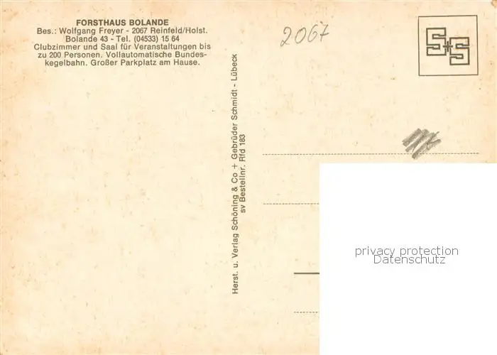 Reinfeld_Holstein Forsthaus Bolande Gastraeume Reinfeld_Holstein postalisch nicht gelaufen nach 1965 Erhaltung siehe scans [FriedD77] Frierer
