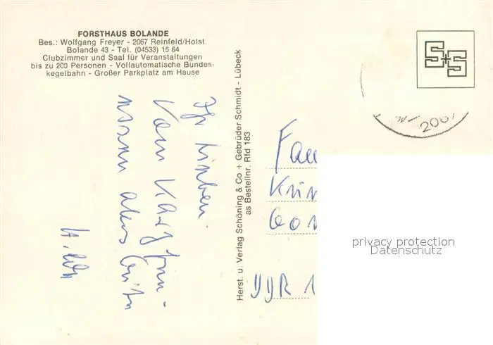 Reinfeld_Holstein Forsthaus Bolande Reinfeld_Holstein postalisch gelaufen nach 1965 Erhaltung siehe scans [LiesaD40] LiesID40