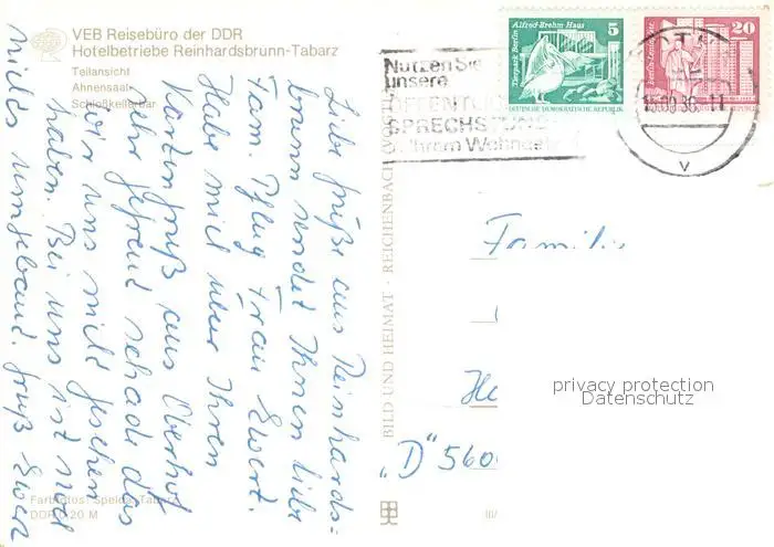 Reinhardsbrunn Schloss Reinhardsbrunn Innen- und Aussenansichten Reinhardsbrunn postalisch gelaufen 1986 Erhaltung siehe scans [LiesaD40] LiesID40
