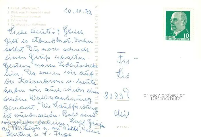 Reinhardtsdorf Schoena Kategorie Alte Ansichtskarten Postkarten bx55593 Reinhardtsdorf Schoena Hotel Wolfsberg Falkenstien Gasthaus zur Hoffnung Reinhardtsdorf Schoena postalisch gelaufen 1972 Erhaltung siehe scans [NatalD47]
