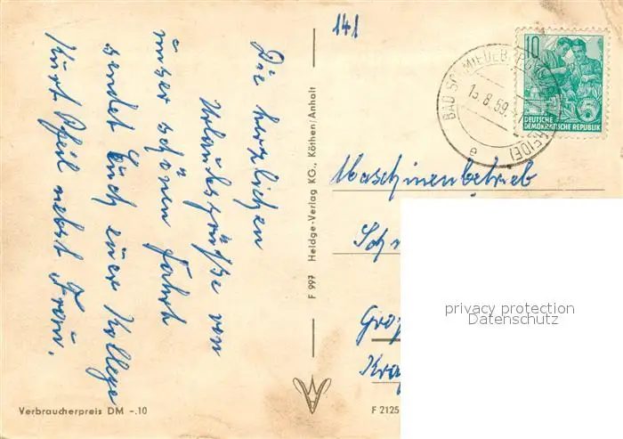 Reinharz_Duebener_Heide SV Genesungsheim Freundschaft Reinharz_Duebener_Heide postalisch gelaufen 1959 Erhaltung siehe scans [LiesaD40] LiesID40