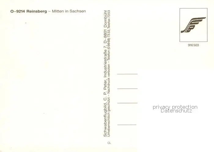 Reinsberg_Freiberg_Sachsen Fliegeraufnahme postalisch nicht gelaufen nach 1965 Erhaltung siehe scans [FriedD77] Frierer