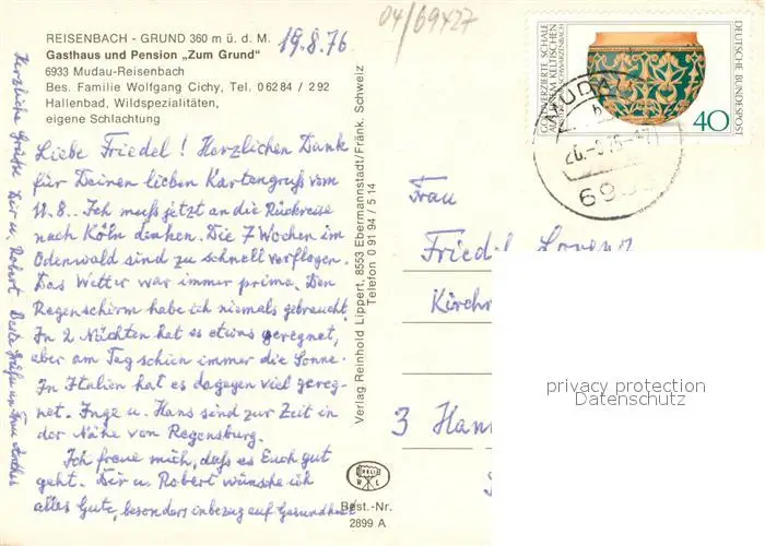 Reisenbach Gasthaus Pension Zum Grund Gaststube Hallenbad Terrasse Reisenbach postalisch gelaufen 1976 Erhaltung siehe scans [WerneD78] WernPID7