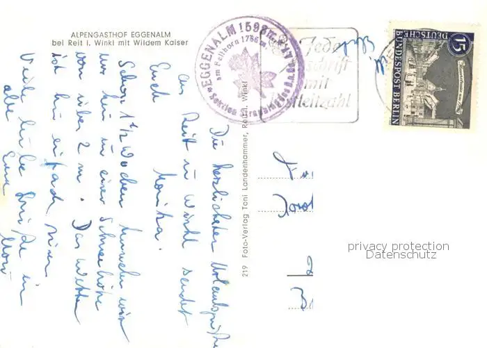 Reit_Winkl Alpengasthof Eggenalm Reit_Winkl postalisch gelaufen 1965 Erhaltung siehe scans [WerneD78] WernPID7