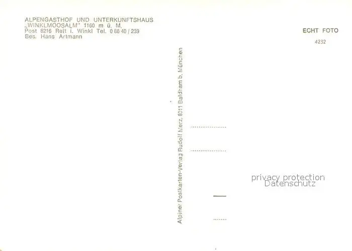 Reit_Winkl Alpengasthof Unterkunftshaus Winklmoosalm Alpen Reit_Winkl postalisch nicht gelaufen 1921-1965 Erhaltung siehe scans [FriedD77] Frierer
