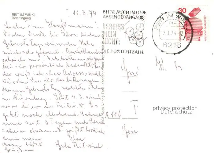 Reit_Winkl Dorfeingang Wintersport Reit_Winkl postalisch gelaufen 1974 Erhaltung siehe scans [KathaD81] Kathoren