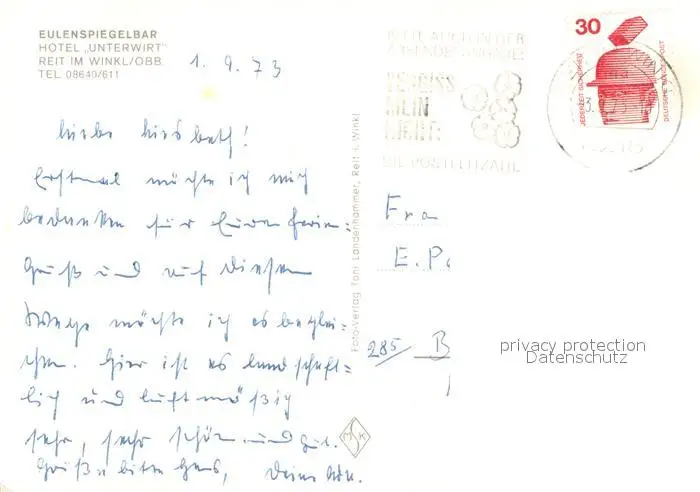 Reit_Winkl Eulenspiegelbar Hotel Unterwirt Restaurant Reit_Winkl postalisch gelaufen 1973 Erhaltung siehe scans [FriedD77] Frierer