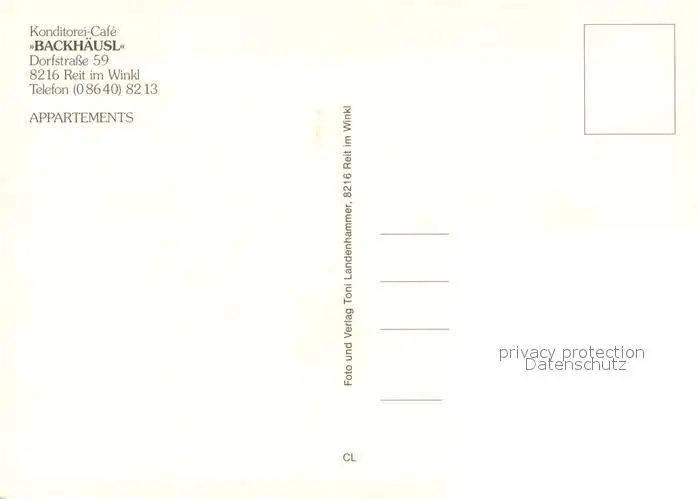 Reit_Winkl Hirtl's Backhaeusl Konditorei Café Verkaufstheke Reit_Winkl postalisch nicht gelaufen nach 1965 Erhaltung siehe scans [FriedD77] Frierer