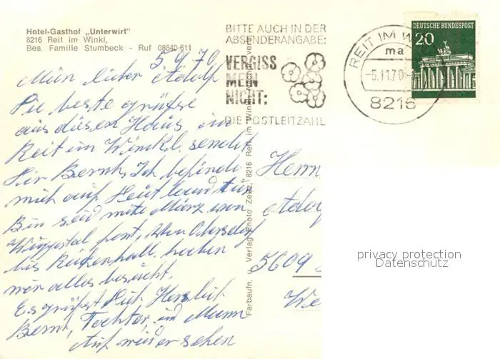 Reit_Winkl Kategorie Alte Ansichtskarten Postkarten bx62926 Reit_Winkl Hotel Gasthof Unterwirt Reit_Winkl postalisch gelaufen 1970 Erhaltung siehe scans [KathaD81]