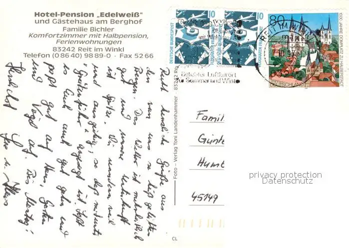 Reit_Winkl Hotel Pension Edelweiss Gaststuben Reit_Winkl postalisch gelaufen 1997 Erhaltung siehe scans [WerneD78] WernPID7