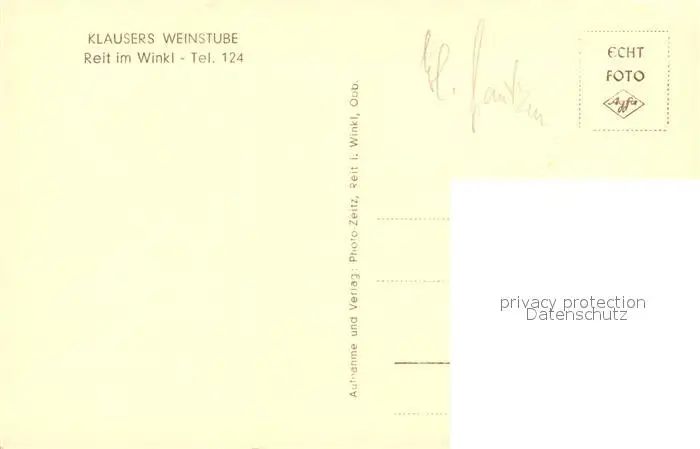 Reit_Winkl Klausers Weinstube Trink solang der Becher winkt Reit_Winkl postalisch nicht gelaufen 1921-1965 Erhaltung siehe scans [KathaD81] Kathoren
