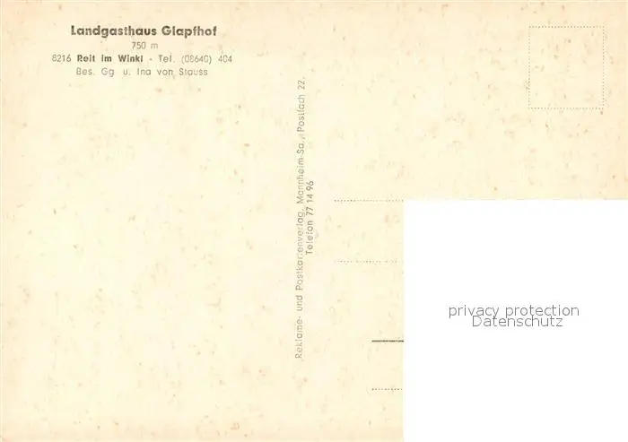 Reit_Winkl Landgasthaus Glapfhof Reit_Winkl postalisch nicht gelaufen 1921-1965 Erhaltung siehe scans [WerneD78] WernPID7