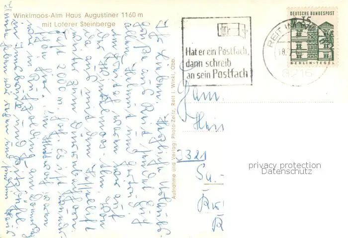 Reit_Winkl Winklmoos Alm Haus Augustineralm mit Loferer Steinberge Reit_Winkl postalisch gelaufen 1965 Erhaltung siehe scans [FriedD77] Frierer