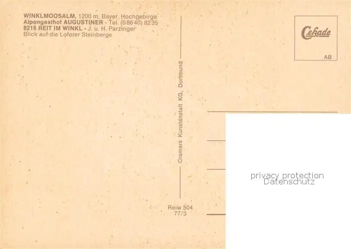 Reit_Winkl Winklmoosalm Alpengasthof Augustiner Reit_Winkl postalisch nicht gelaufen nach 1965 Erhaltung siehe scans [WerneD78] WernPID7