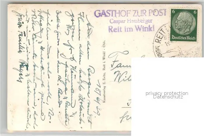 Reit_Winkl mit Wildem Kaiser Gasthof zur Post Reit_Winkl postalisch gelaufen 1939 Erhaltung siehe scans [LiesaD40] LiesID40