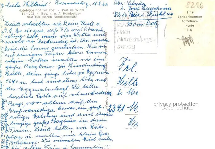 Reit_im_Winkl Hotel-Gasthof Zur Post Aussenansicht m. Biergarten postalisch gelaufen 1966 Erhaltung siehe scans [LiesaD40] LiesID40