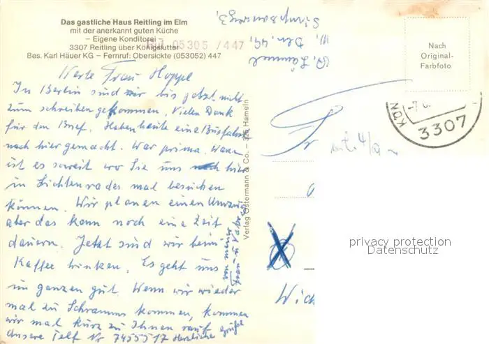 Reitling Haus Reitling im Elm Hotel Restaurant Terrasse Reitling postalisch gelaufen 1974 Erhaltung siehe scans [FriedD77] Frierer