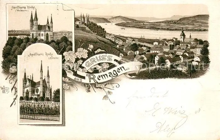 Remagen Apollinaris Kirche Panorama Remagen postalisch gelaufen 1896 Erhaltung siehe scans [WerneD78] WernPID7