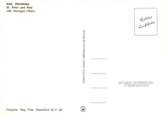Remagen Kath Pfarrkirche St Peter und Paul Fliegeraufnahme Remagen postalisch nicht gelaufen nach 1965 Erhaltung siehe scans [FriedD77] Frierer