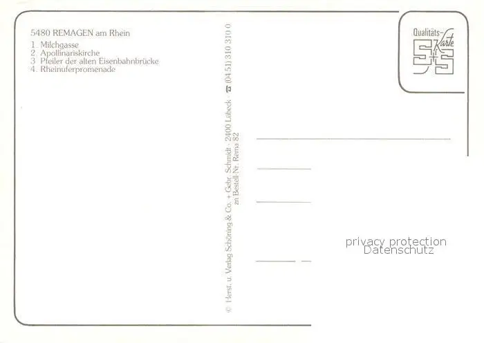 Remagen Milchgasse Apollinariskirche Pfeiler der alten Eisenbahnbruecke Rheinunferpromenade Remagen postalisch nicht gelaufen nach 1965 Erhaltung siehe scans [WerneD78] WernPID7