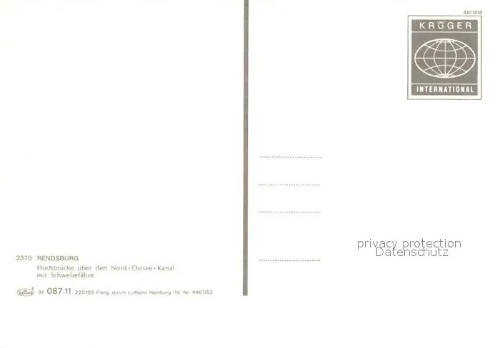 Rendsburg Hochbruecke ueber den Nord-Ostsee-Kanal mit Schwebefaehre Fliegeraufnahme Rendsburg postalisch nicht gelaufen nach 1965 Erhaltung siehe scans [WerneD78] WernPID7