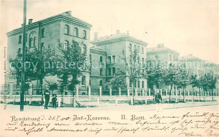 Rendsburg Inf Kaserne II Battl Rendsburg postalisch gelaufen 1900 Erhaltung siehe scans [WerneD78] WernPID7