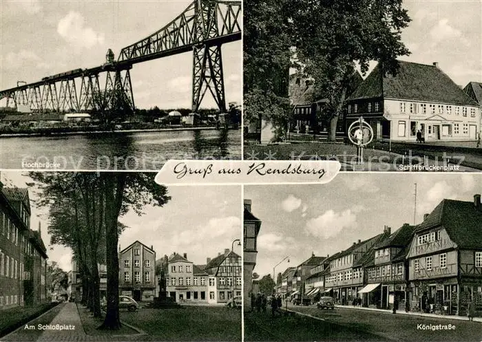 AK / Ansichtskarte Rendsburg Schiffbrueckenplatz Koenigstrasse Schlossplatz Hochbruecke Rendsburg