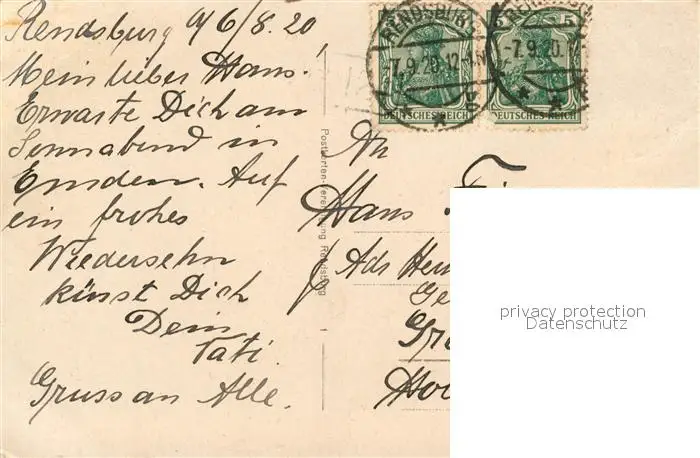 Rendsburg Stadthalle Rendsburg postalisch gelaufen 1920 Erhaltung siehe scans [WerneD78] WernPID7