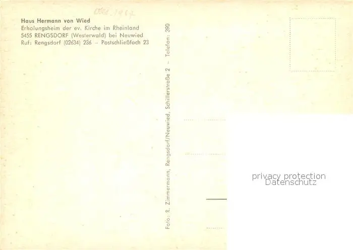 Rengsdorf Haus Hermann von Wied Erholungsheim der ev. Kirche Rengsdorf postalisch nicht gelaufen nach 1965 Erhaltung siehe scans [FriedD77] Frierer