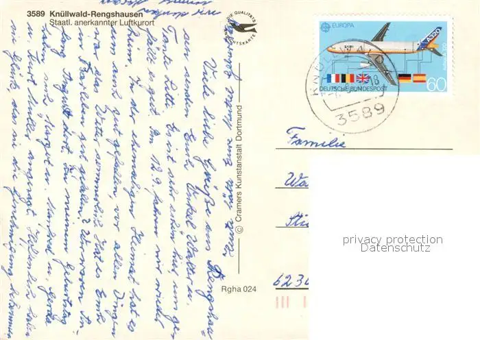 Rengshausen Knuellwald Kategorie Alte Ansichtskarten Postkarten bx54812 Rengshausen_Knuellwald Kirche Rengshausen Knuellwald postalisch gelaufen nach 1965 Erhaltung siehe scans [NatalD47]