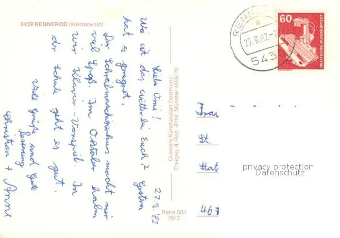 Rennerod Kategorie Alte Ansichtskarten Postkarten bx60109 Rennerod Fliegeraufnahme Rennerod postalisch gelaufen 1982 Erhaltung siehe scans [WerneD78]