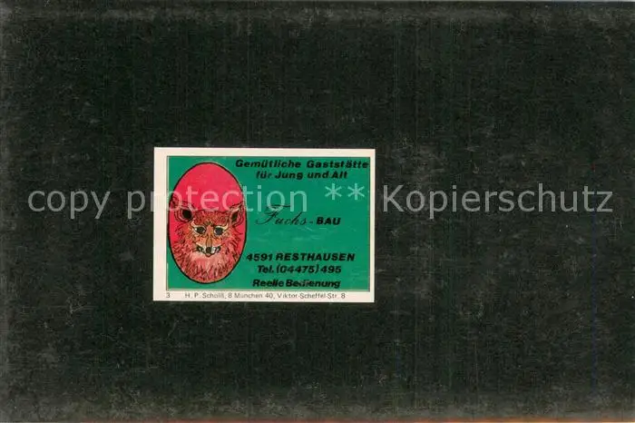 Resthausen_Molbergen Fuchs-Bau Gaststaette Resthausen_Molbergen postalisch nicht gelaufen nach 1965 Werbe-Etikett (keine Postkarte) Erhaltung siehe scans [LiesaD40] Werbe-Etikett (keine Postkarte) LiesID40