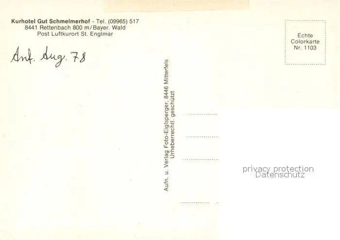 Rettenbach_Cham Kurhotel Gut Schmelmerhof Gaestehaus Aussichtsturm Rettenbach Cham postalisch nicht gelaufen 1978 Erhaltung siehe scans [KathaD81] Kathoren