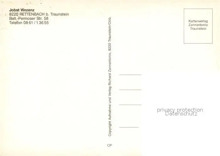 Rettenbach_Traunstein Pension Jobst Vinzenz postalisch nicht gelaufen nach 1965 Erhaltung siehe scans [PaolaD17] PaolPID1