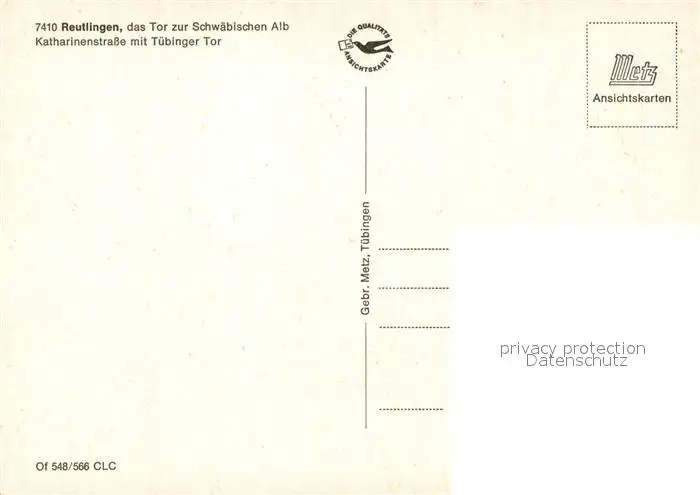 Reutlingen_Tuebingen Katharinenstrasse mit Tuebinger Tor Tuerschild Altstadt Reutlingen Tuebingen postalisch nicht gelaufen nach 1965 Erhaltung siehe scans [FriedD77] Frierer
