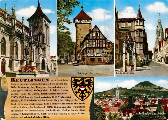 AK / Ansichtskarte Reutlingen_Tuebingen Tuebinger Tor Lindenbrunnen Marienkirche Reutlingen Tuebingen