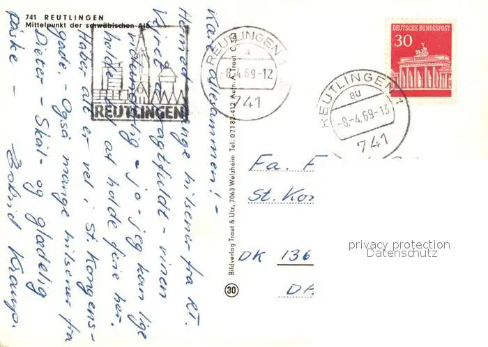 Reutlingen_Tuebingen Tuebinger Tor Lindenbrunnen Marienkirche Reutlingen Tuebingen postalisch gelaufen 1969 Erhaltung siehe scans [KathaD81] Kathoren