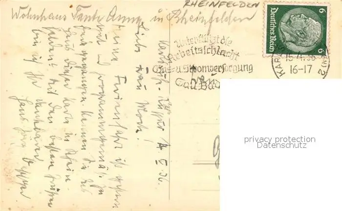 Rheinfelden_Baden Kategorie Alte Ansichtskarten Postkarten bx58584 Rheinfelden_Baden Wohnhaus Tante Anna Rheinfelden_Baden postalisch gelaufen 1936 Erhaltung siehe scans [WerneD78]