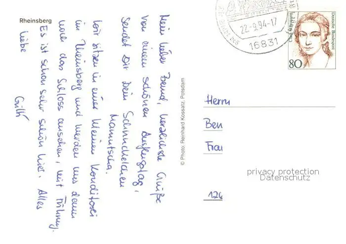 Rheinsberg Fliegeraufnahme Rheinsberg postalisch gelaufen 1994 Erhaltung siehe scans [WerneD78] WernPID7