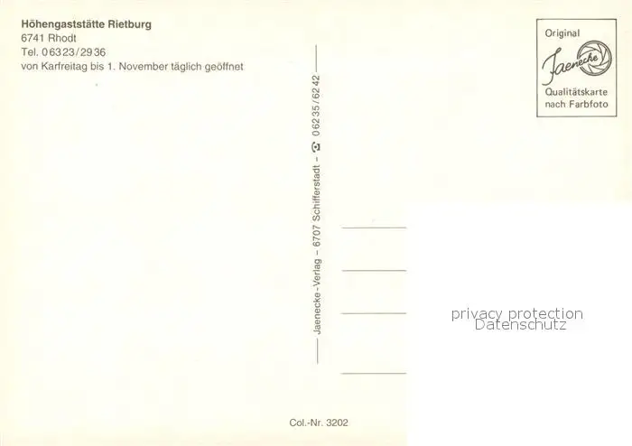 Rhodt_Rietburg Hoehengaststaette Rietburg Restaurant Terrasse Fernsicht Rhodt Rietburg postalisch nicht gelaufen nach 1965 Erhaltung siehe scans [FriedD77] Frierer