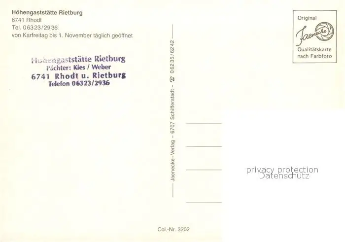Rhodt_Rietburg Hoehengaststaette Rietburg Terrasse Gastraum Rhodt Rietburg postalisch nicht gelaufen nach 1965 Erhaltung siehe scans [WerneD78] WernPID7
