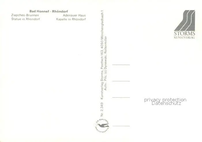 Rhoendorf Adenauer Haus Kapelle Ziepches-Brunnen Rhoendorf postalisch nicht gelaufen nach 1965 Erhaltung siehe scans [NatalD47] NataID47