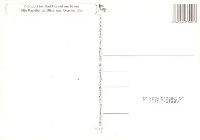 Rhoendorf Alte Kapelle Drachenfels Rhoendorf postalisch nicht gelaufen nach 1965 Erhaltung siehe scans [NatalD47] NataID47